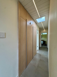 One of the few real design flaws in many Eichler homes is the open hallway laundry. Here’s how we turned one awkward, exposed washer and dryer area into clean custom cabinetry with a broom closet, folding space, and much-needed storage.